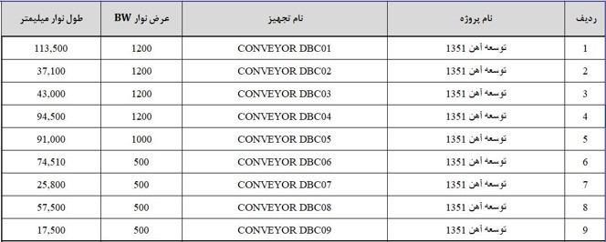 تامین و ساخت دستگاه نوار نقاله های به طول تقریبی ۶۰۰ متر به همراه تجهیزات طبق مشخصات ذیل :